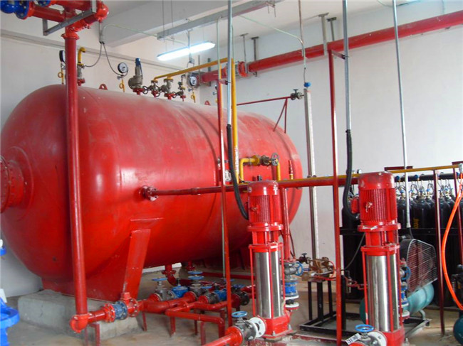 消防給水設備包括消火栓滅火系統、自動噴水滅火系統、水幕系統、雨淋系統等,主要由消防主泵、消防備用泵、穩壓泵組、氣壓罐、壓力傳感器、控制柜等組成。平時由穩壓泵組將管網壓力穩定在設定值,火災時消防主泵自動啟動滅火。