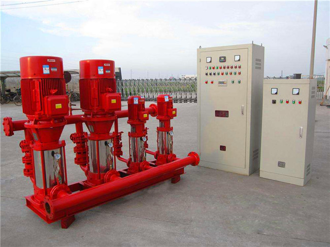 消防給水設備的概述,特點,結構及工作原理.消防給水設備由消防主泵、消防備用泵、穩壓泵組、氣壓罐、壓力傳感器、控制柜等組成。平時由穩壓泵組將管網壓力穩定在設定值,火災時消防主泵自動啟動滅火。消防主泵發生故障時,消防備用泵自動投入運行。帶有雙電源切換裝置,當主電發生故障時,可自動切換備用電源。